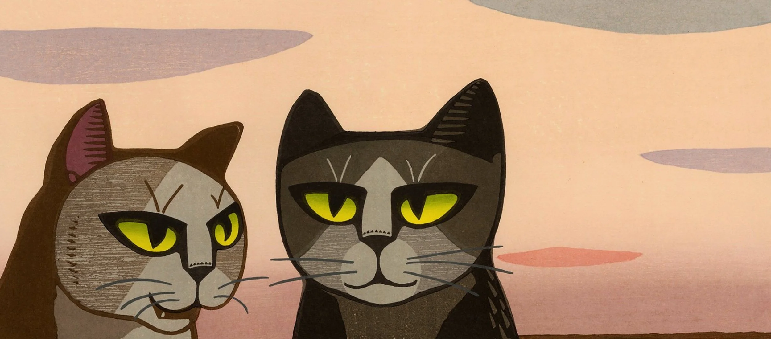 Despite the reliability of work in the steel industry, the inner-pull to become an artist was stronger. Inagaki promptly quit his job and enrolled in a two-year program at the Tokyo Higher Technical School to become a full-time artist. A year later, in 1924, Inagaki's efforts were rewarded when one of his prints was selected by Poems and Hanga for publication; additionally, he was exhibited with the Nihon sosaku hanga Kyokai. In a matter of time, he was being invited to exclusive meetings with the magazine editors and contributing artists of Poems and Hanga, eventually becoming a regular contributor. Inagaki would later contribute to other magazines, including Ichimokushu, HANGA, and Kitsutsuki. His efforts were further recognized abroad in the Paris, Tokyo, and Lugano biennales. In time, Inagaki transitioned away from sosaku hanga towards commercial art. He studied briefly under Hamada Masuji and opened a studio in Tokyo until the onset of WWII. After the war, Inagaki worked as a free-lance, commercial designer and teacher until his death in 1980. Stylistically, Inagaki Inagaki's hanga bear a strong resemblance to Picasso, however, there is also considerable influence from both Onchi and Hiratsuka. Thematically his prints vary, but the majority of works produced post-WWII feature highly stylized images of cats.